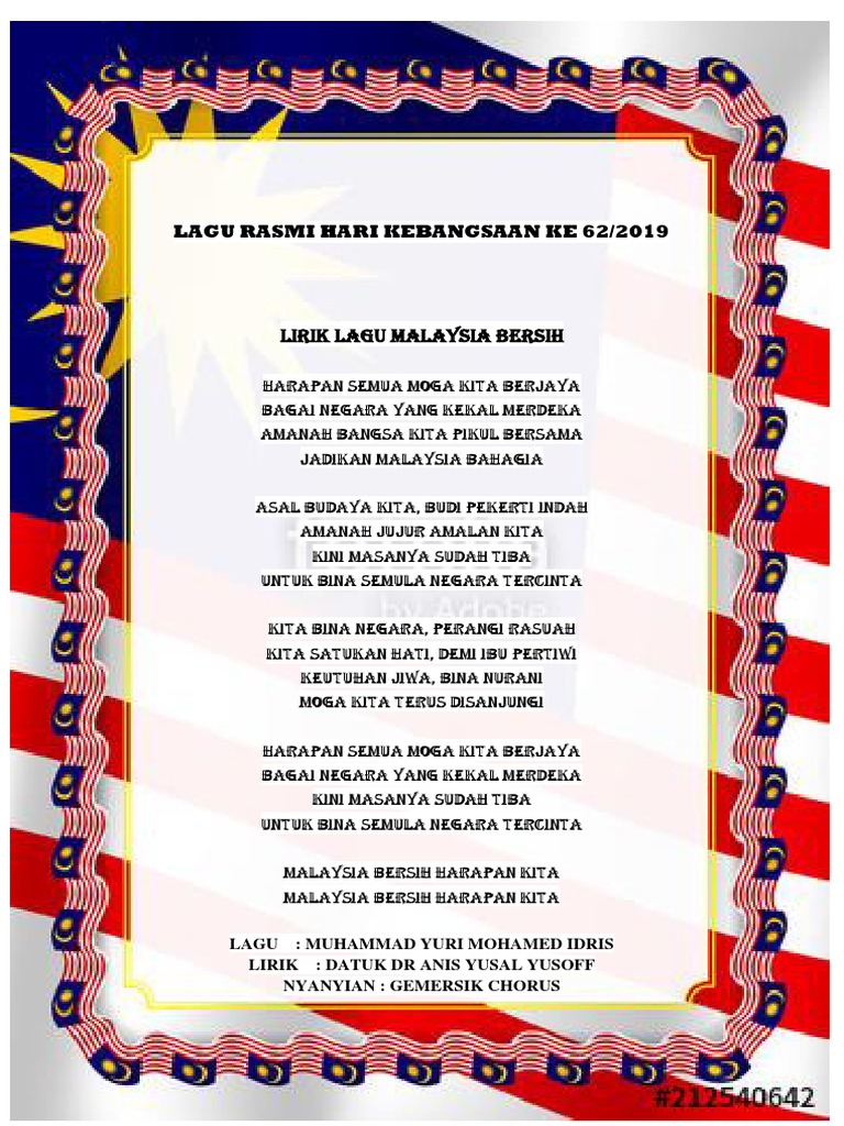 Raja kita selamat bertakhta. Ku malaysia malaysia ku pertahan sepenuhnya malaysia. Lagu malaysia bersih ciptaan muhammad yuri mohamed idris dan lirik oleh datuk dr anis yusal yusoff.
