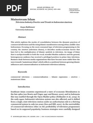 Mainstream Islam Television Industry Practice And Trends In Indonesian Sinetron Soap Opera Nielsen Ratings