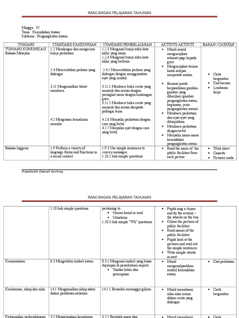 Subtema Kemudahan Lembaran Kerja Tema Kemudahan Awam Prasekolah